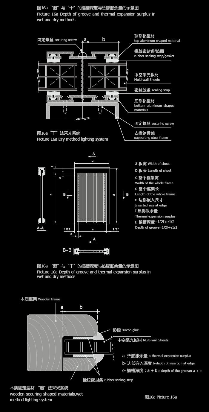 中空板材在多數現實情況下使用溫度溫差在50℃范圍內,其每米的熱脹冷縮量約3mm,比如寬1.00m,長1.50m的板材其寬度方向的熱脹冷縮量為3mm,長度方向約5mm。建議考慮實際情況,計算余量時放大一倍,余量在板材兩端各考慮一半。